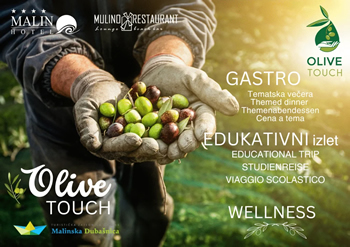 OLIVE TOUCH je edukativni, gastronomski i wellness program koji slavi maslinovo ulje i u kojem maslinari goste kroz posjete u maslinicima educiraju o uzgoju i branju maslina, blagodatima maslinovog ulja te kroz degustaciju domaćeg maslinovog ulja pružaju jedinstven doživljaj boravka na „Zlatnom otoku“ u tradicionalnoj berbi maslina.