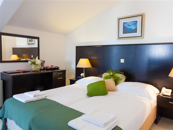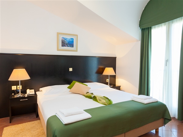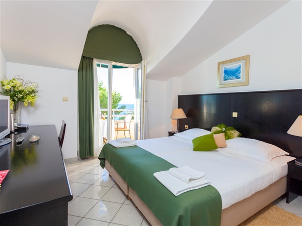 SUPERIOR SOBA - dvokrevetna soba (1/2+1) ima balkon s pogledom na more, kupaonicu s tušem, klimu, direktnu telefonsku liniju, Wi-Fi pristup Internetu, SAT-TV, mini bar, sušilo za kosu i sef.