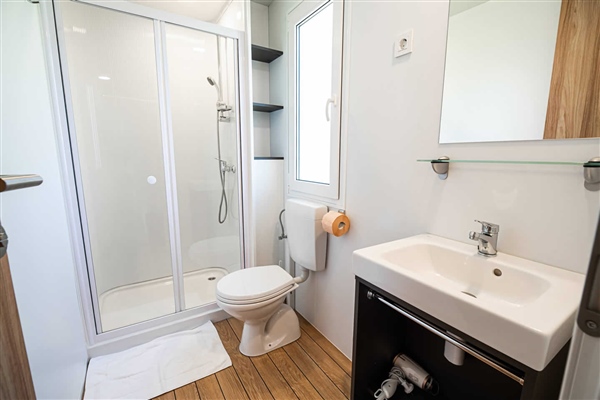 Dvosobne mobilne kućice imaju dnevni boravak sa kaučem na rasklapanje, dvije spavaće sobe i kuhinju (kuhinjski stol, ploča za kuhanje, kuhinjski pribor, kuhalo za vodu, mikrovalna pećnica, hladnjak), kupaonicu (WC, sušilo za kosu, tuš kabina/kada), natkrivenu drvenu terasu, Wi-Fi, TV i klimu.