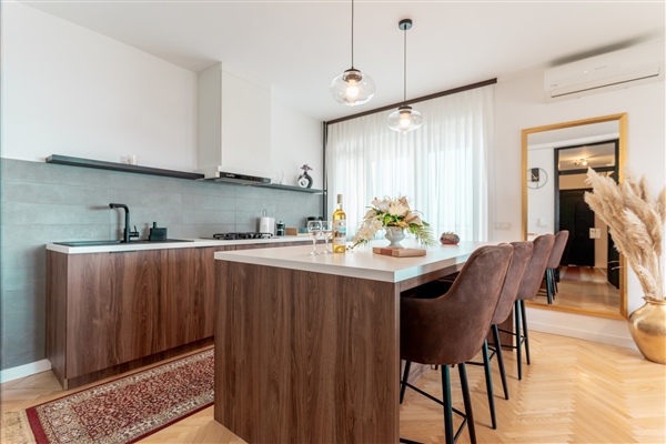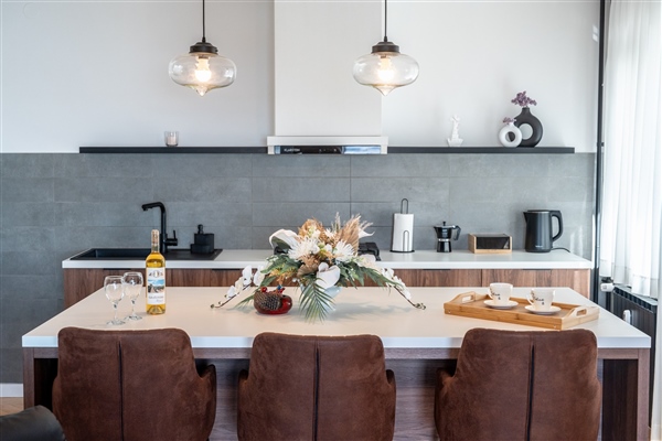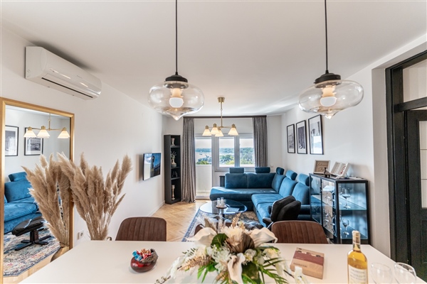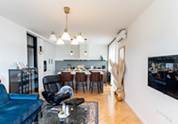 Prostrani apartman od 57 m² obuhvaća jednu spavaću sobu, dnevni boravak i kuhinju opremljenu perilicom posuđa, hladnjakom i radnim kutkom. Uz to, tu su tuš, kadica i balkon s pogledom, besplatni Wi-Fi, klima uređaj te privatno parkirno mjesto koje vam osigurava potpunu udobnost.