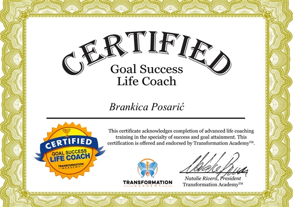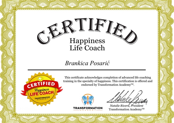 certificirani life coach i voditeljica radionica osobnog razvoja te članica našeg tima Full of joy. Brankica posjeduje više međunarodno priznatih certifikata: Master Life Coach, Professional Life Coach, Goal Success Life Coach, Happiness Life Coach i Life Purpose Life Coach.
