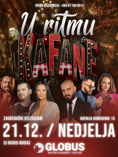 21.12.2025 – stiže najtraženiji RITAM Balkana u Zagreb! Nazdravi, digni ruke i zapjevaj uz Ritam kafane – početak u 20 h u GLOBUSU! Čekaju te najpoznatiji izvođači, luda atmosfera i iznenađenja koja će zapaliti noć! Ulaznice lete – osiguraj svoje mjesto dok ih još ima!