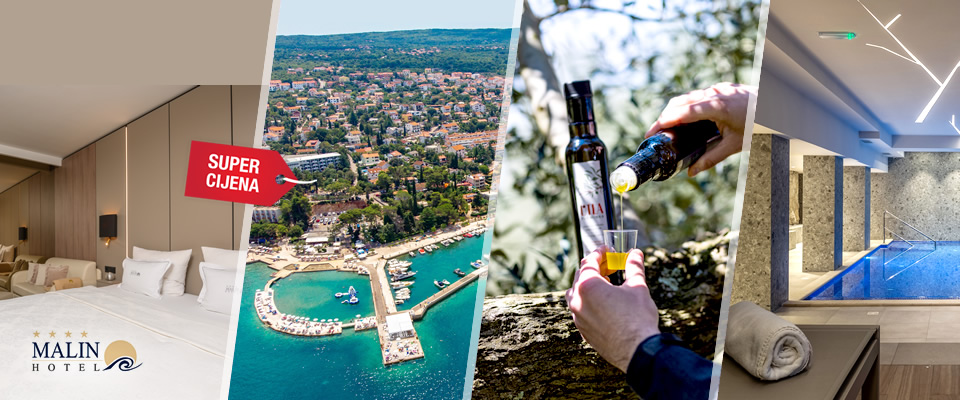 Ponuda uključuje: 2x doručak, 1x "Olive Touch" tematska večera u restoranu Mulino (piće nije uključeno), 1x večera u restoranu Malin, 1x Olive touch masaža u Wellness& Spa centru hotela u trajanju od 25 min (uz rezervaciju)