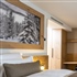 DELUXE SOBA (25 m2 - 36 m2) nudi moderan i prostran boravišni prostor sa panoramskim prozorima, a luksuzni dizajn kupaonice nudi još više prostora za relaksaciju. Uživajte u panoramskom pogledu koji seže preko šumom prekrivenih brda i prirodno se probudite uz jutarnje sunce.