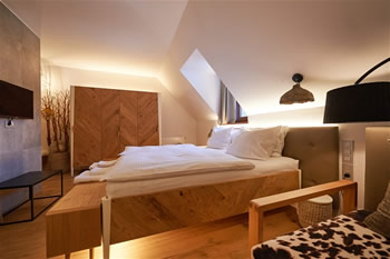 Smještaj u boutique sobama inspiriranim alpskom tradicijom. Za ugodan početak boravka u sobi vas očekuje wellness košara s mekanim ogrtačem, papučama i ručnicima za saunu.