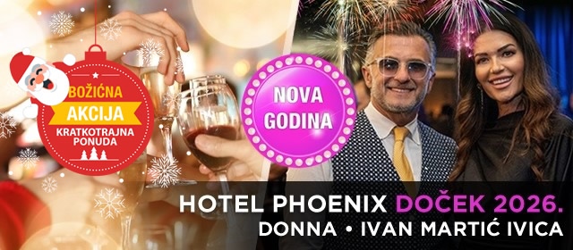 [AKCIJA] DOČEK 2026. u Hotelu Phoenix 4* u Zagrebu uz 23% POPUSTA! Raskošna Novogodišnja večera u sljedovima s uključenim pićem, sve uz vrhunski glazbeni Show - Ivan Martić Ivica & Donna & band!
