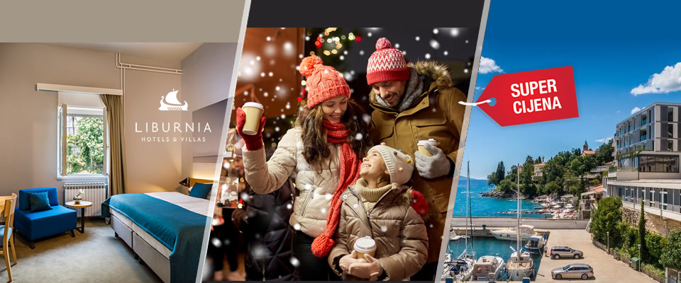 Ponuda uključuje: 2 noćenja s bogatim buffet doručkom i večerom (polupansion i piće iz šankomata uz večeru), u dvokrevetnoj standard sobi strana ulica + 1 x kuhano vino ili topla čokolada, jednom tijekom boravka + 15 % popusta tijekom "happy houra" u Lobby baru Wind od 16 do 18 h + posebne večeri s tradicionalnom kuhinjom petkom + korištenje unutarnjeg bazena s grijanom morskom vodom i ležaljkama uz bazen + bogat izbor aktivnosti poput: smovey walk, body workout, yoga, nordic walking... prema planu i programu + zimske kreativne radionice petkom + 21.12. doručak s Djed Božičnjakom uz doplatu od 20,00 eur po osobi od 10:00 do 12:00 sati s animacijom za djecu + bogati adventski program u Opatiji + besplatan Wi-Fi