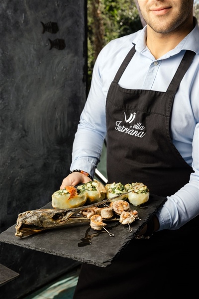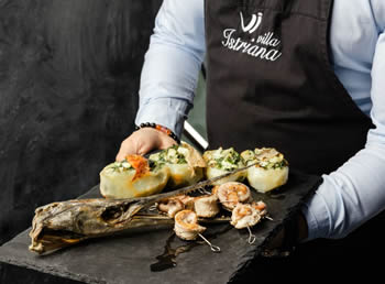 U malom obiteljskom objektu Wellness Ville Istriane nudi se i riblja večera a la carte iz dnevnog ulova ribe vlasnika koji ima i uzgoj kamenica i dagnji, dok sin vlasnika profesionalan kuhar pomno pripravlja svježe namirnice i dnevne menije koji su poseban ponos restorana jer se njima potiče uživanje u raznim kombinacijama okusa te jedinstvenoj prezentaciji hrane. Jelovnik je inspiriran sezonskim namirnicama, a bazira se na spoju tradicionalne istarske kuhinje s elementima moderne kuhinje.