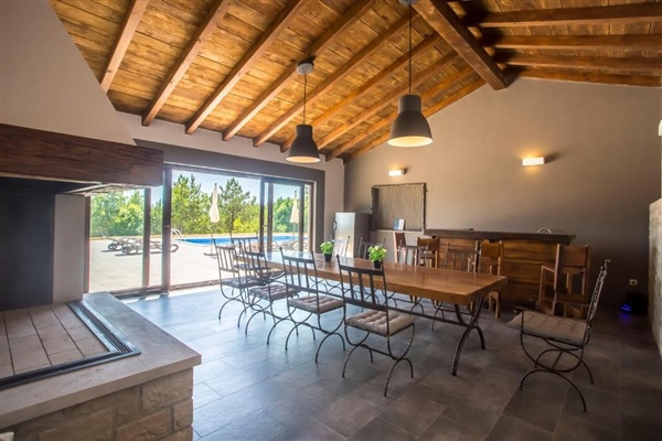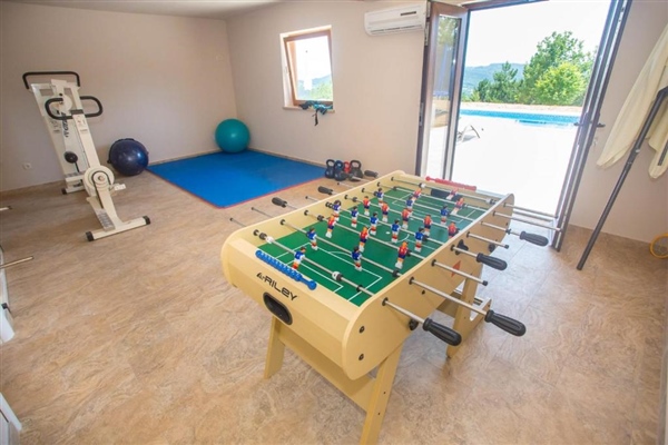 Na raspolaganju Vam je konoba s drvenim stolom i garniturom za sjedenje, kaminom, saunom i fitness sobom/teretana. Vila je u potpunosti klimatizirana i nudi parking za 3 automobila.