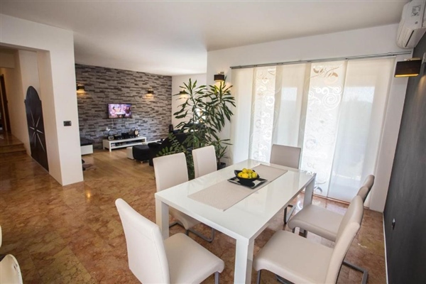 Luksuzni namještaj koji ističe suvremenu umjetnost. Vila se sastoji od dnevnog boravka s pogledom na kristalno čist bazen (otvoren u ljetnim mjesecima) i uređenog vrta.