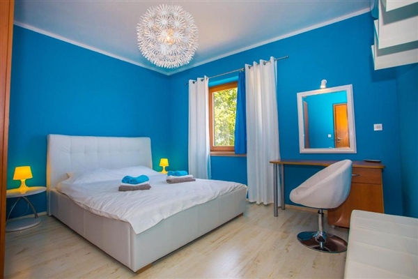 Kuhinja je opremljena svim aparatima (električni štednjak, pećnica, mikrovalna pećnica, perilica posuđa). Vila ima tri spavaće sobe (dvije s bračnim krevetom i jedna s odvojenim krevetima) na prvom katu.