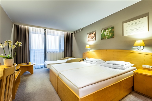 Hotelski termalni bazeni - 5 hotelskih bazena: unutarnji termalni rekreacijski bazen, vanjski termalni rekreacijski bazen, unutarnji i vanjski bazen crne termomineralne vode te vanjski dječji bazen s toboganom dubine 25-60 cm.