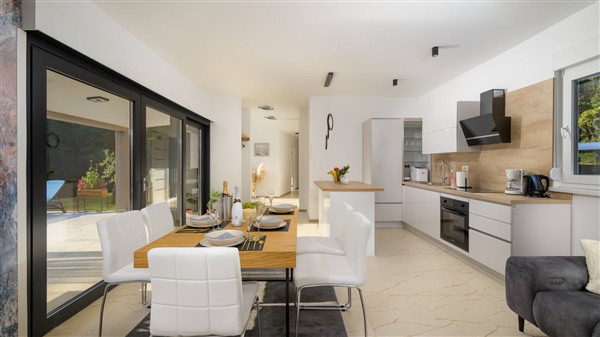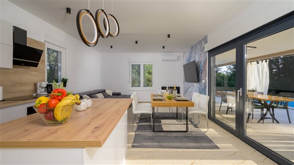 Čarobna priroda koja okružuje vilu mamit će vas da izađete van i uživate u suncu i miru u vrtu, na ležaljkama na terasi za sunčanje ili pripremite obrok na vanjskom roštilju i okupite se oko stola u vanjskoj blagovaonici.