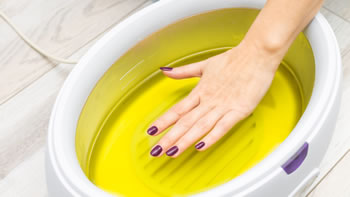 Parafinska kupka: Ruke se uranjaju u posudu s ugodno zagrijanim (52-56°C) tekućim parafinskim voskom, ponavljajući postupak nekoliko puta dok se ne stvori deblji sloj voska.