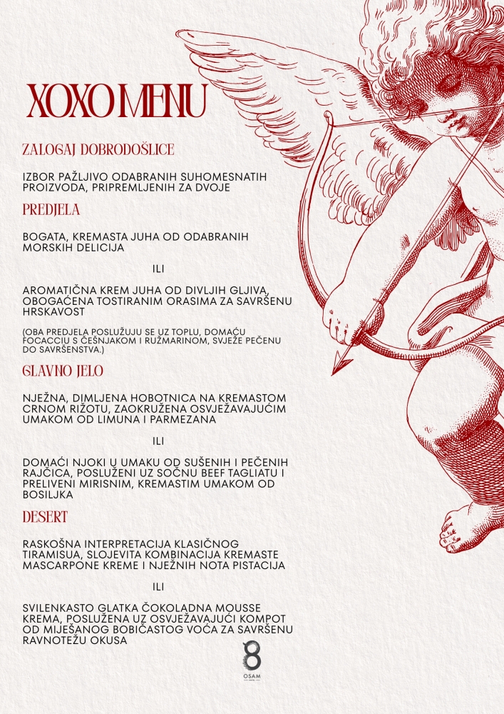 Neobavezna nadoplata na licu mjesta za romantičnu Valentinovo večeru 14.02. u 19:30 h – poseban meni (riblji ili mesni) uz prigodne poklone iznenađenja. Kupon za ponudu vrijedi za dvije osobe, od 13.02.26. do 15.02.26.