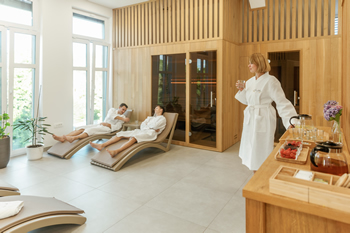 Uz masaže, na raspolaganju su tri vrste sauna: finska sauna poznata po detoksikaciji i poboljšanju cirkulacije, infracrvena sauna koja dubinski prodire u mišiće i pomaže u oporavku te biljna sauna s blagim, prirodnim aromama koje njeguju tijelo i um. Nakon saune, opustite se u masažnom bazenu ili na udobnim ležaljkama, uživajući u atmosferi potpune relaksacije.