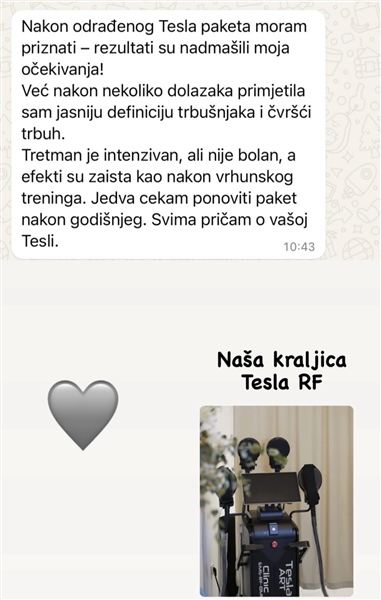 Poklon! TESLA RF tretman kombinira radiofrekvencijsku tehnologiju i elektromagnetske valove za zatezanje, podizanje i pomlađivanje kože lica i tijela.