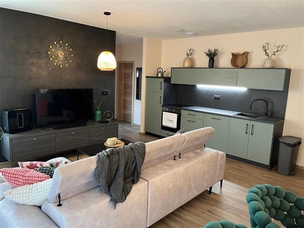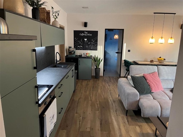 Vanjska terasa je dimenzije 6,5x3,5 m s orijentacijom na južnu stranu s prekrasnim pogledom na šumu.