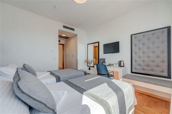 Soba je opremljena udobnim bračnim krevetom ili s dva odvojena kreveta, klimatizacijom, besplatnim Wi-Fi-jem, flat-screen televizorom, radnim stolom, sefom i minibarom. Velike staklene površine osiguravaju obilje prirodnog svjetla, dok balkon s pogledom na more pruža savršeno mjesto za jutarnju kavu ili večernje opuštanje.