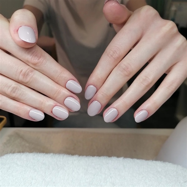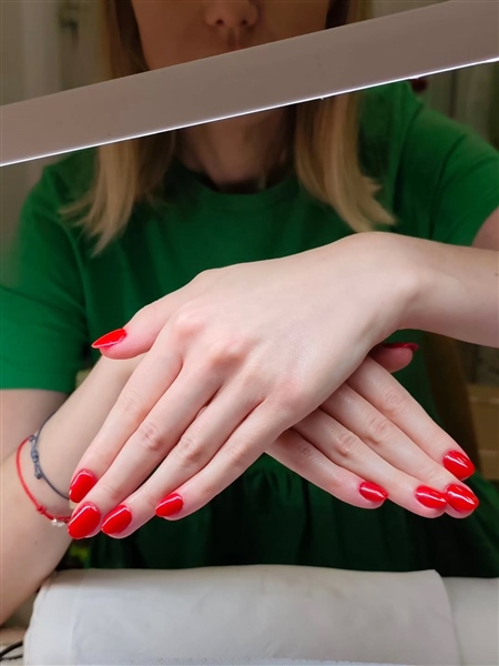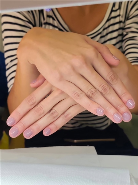 Pripremna faza (manikura): Postupak započinje klasičnom manikurom. To uključuje oblikovanje noktiju, potiskivanje ili uklanjanje kožice te čišćenje i pripremu nokatne ploče.