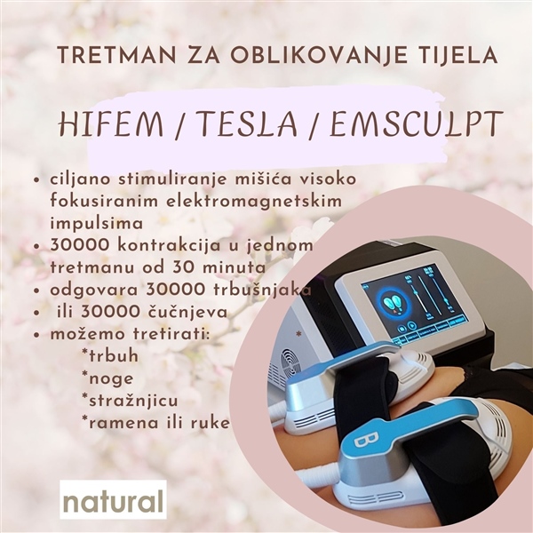 Najnoviji tretman za oblikovanje tijela koji je tek od nedavno dostupan u Europi uspijeva upravo to i čini ono za što se često misli da nije moguće – izgrađuje mišićnu masu dok istovremeno otapa suvišne masnoće! Kontrakcije mišića jačaju i učvršćuju mišićna vlakna – pružajući rezultate usporedive s rezultatima intenzivnog treninga – podignuta i tonirana stražnjica, definirane ruke, zategnutija bedra, ravniji i zategnut trbuh. Rast mišića, otapanje masnoće, tretman protiv celulita, tretman mršavljenja.