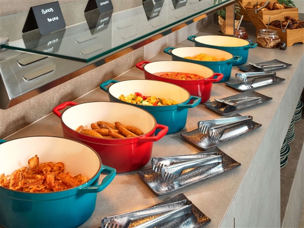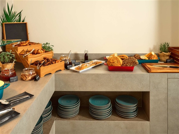 Restoran i bar hotela odišu prirodnim, svježim ambijentom, idealnim za uživanje u ukusnoj gastronomiji i opuštajućim trenucima nakon poslovnih obaveza ili istraživanja grada.
