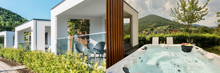 Za potpuni ugođaj i osjećaj komocije u našim kućicama modernog dizajna, nalaze se dvije spavaće sobe sa individualnim kupaonicama, zajednička kuhinja te vanjska terasa sa prekrasnim pogledom kojeg dočarava kamp te raskoš prirode koja ga okružuje.
