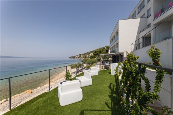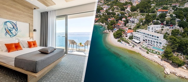Smješten doslovno na obali Jadrana, ovaj elegantni hotel nudi sve što priželjkujete od luksuznog odmora: moderne, prostrane i klimatizirane sobe s balkonom i panoramskim pogledom na more, besplatan Wi‑Fi, privatnu plažu i infinity bazen s ležaljkama – savršeno za opuštanje uz zvuk valova. Uživajte u dalmatinskoj i mediteranskoj gastronomiji u hotelskom restoranu, probudite se uz bogati doručak i provedite dane uz more ili istražujući šarmantnu rivijeru Omiša, šetnice, plaže i povijesnu jezgru grada.