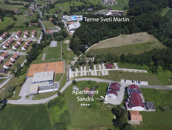 APARTMAN SANDRA 4* nalazi se u samim Toplicama Sveti Martin i 300 je metara udaljen od ulaza na bazene Temple of Life.