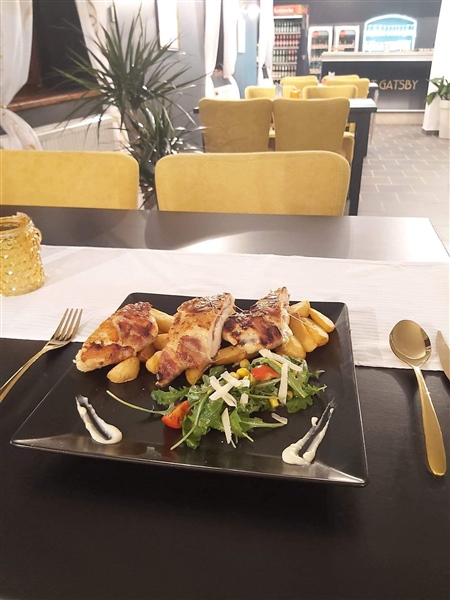 U samom srcu baroknog Vukovara, restoran Great Gatsby nudi jedinstveno gastronomsko iskustvo inspirirano estetikom "ludih dvadesetih". Smješten u raskošno uređenom prostoru koji odiše elegancijom crnih i zlatnih tonova, ovaj objekt predstavlja savršen spoj modernog dizajna i vrhunske kulinarske usluge.