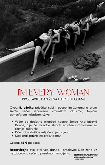Moguća nadoplata na licu mjesta za večeru 08.03. s početkom od 18:30 sati (po cijeni od 45,00 EUR za riblji ili mesni meni po osobi, ovisno o odabiru) uz poseban meni za Dan žena.