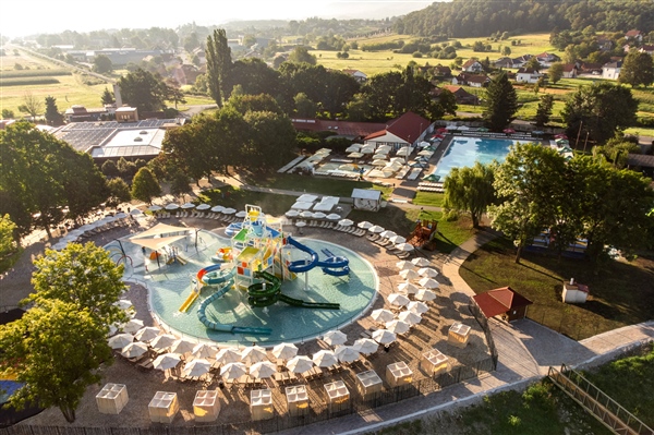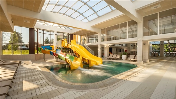 Unutarnji vodeni park s prirodnom termalnom vodom otvoren je cijele godine te nudi plivački bazen, hidromasažni bazen, dječji bazen s toboganima, bazen za bebe i rekreacijski bazen. Termalna voda izvorne temperature 38°C sadrži više različitih iona te se smatra ljekovitom mineralnom vodom.