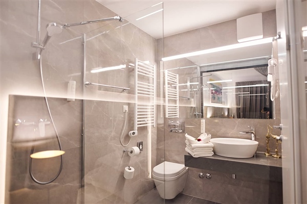Superior soba osmišljena je za goste koji cijene udobnost, prostor i funkcionalan dizajn. Na površini od 25 m², ova klimatizirana dvokrevetna soba nudi dva udobna kreveta (90 × 200 cm) spojena u prostrani bračni krevet, savršen za kvalitetan odmor nakon dana provedenog u Opatiji.