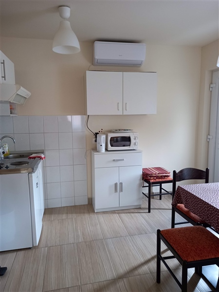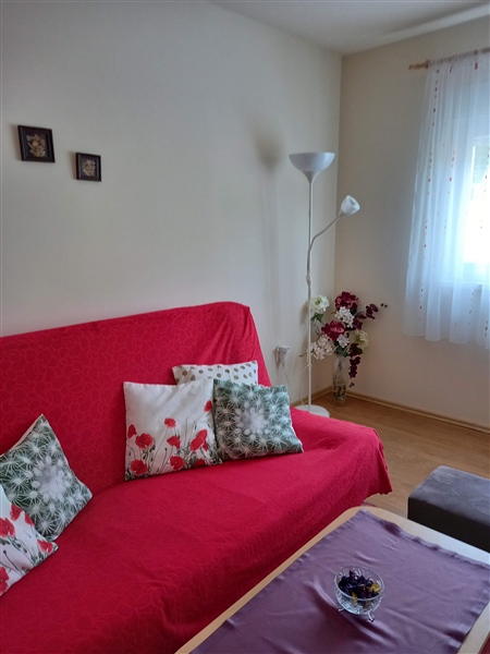 Ulaz s pred prostorom ● kuhinja s blagovaonicom (sa svom opremom za pripremanje hrane) i izlazom na terasu ● dnevni boravak s krevetom na razvlačenje, LCD TV, EVO TV, WI-FI ● spavaća soba s bračnim krevetom ● kupaonica s tuš kabinom ● terase: 1 veća, 2 manje ● dječji krevetić uz najavu ● predivna terasa za roštiljanje i uživanje ● klima ● parkiralište.