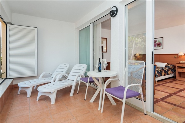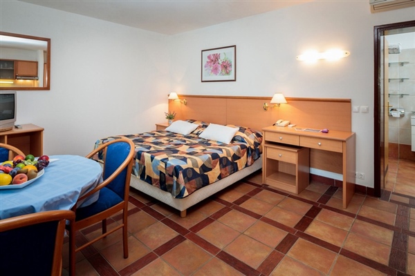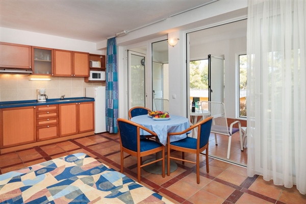 Smješteni u prizemlju, okruženi borovom šumom, naši Deluxe studio apartmani nude oazu mira. Apartmani imaju 1 bračni krevet, manju kuhinju s prostorom za blagovanje, kupaonicu s tušem i lođu.