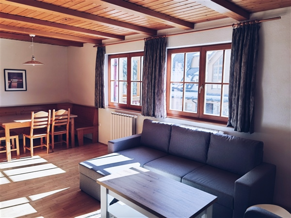 PREMIUM APARTMAN - prostrani apartman opremljen je kuhinjom (staklokeramička ploča, pećnica, toster, aparat za kavu, perilica suđa, kuhalo za vodu, hladnjak sa zamrzivačem), dnevnim boravkom s blagovaonicom (kauč koji se razvlači u udoban ležaj za jednu osobu odrasla osoba ili dvoje djece, TV kutak s prekrasnim kaminom), spavaća soba s bračnim krevetom (ili dva odvojena ležaja) i pomoćnim ležajem, druga spavaća soba s tri kreveta, dvije kupaonice s tušem ili kadom i wc. Stan ima balkon i nalazi se u stambenoj zgradi s liftom.