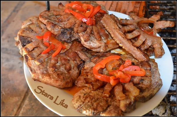 Večera - lička teletina s ličkim krumpirom, gulaš od buše, domaće salate iz Like, domaći lički kruh