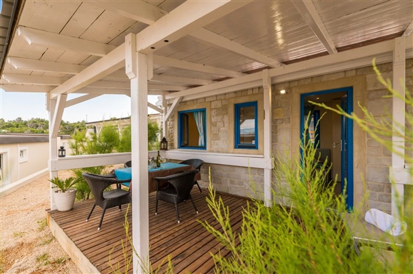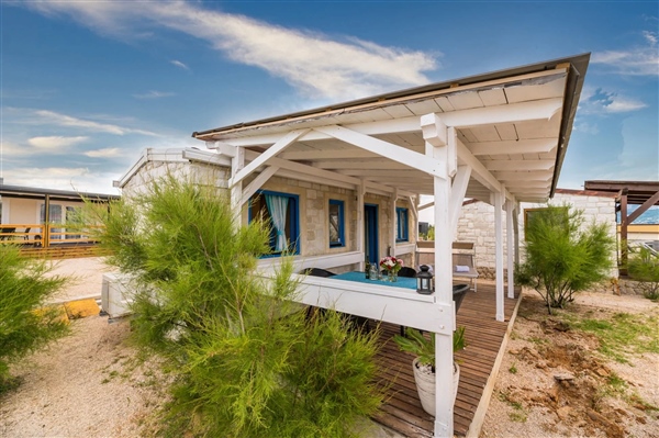 Standard mobilna kućica - lijepa i jednostavna, idealna za 4 osobe. Veličine 22 m2 (7,3 m * 3m). Uređena u duhu mediterana, obložena dekorativnim kamenom; predstavlja pravi mali prototip kamene kućice, tipične za podneblje otoka. Sastoji se od 2 spavaće sobe, 1 kupaonice, dnevnog boravka te kuhinjske niše. Opremljena klima uređajem, televizijom, natkrivenom terasom, sa sjedećom garniturom i ležaljkama.