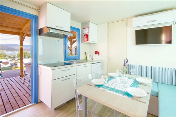 EXTRA pogodnost - u cijenu uključeno i 1x čišćenje mobilne kućice, 1 set posteljine i ručnika, besplatan parking! Kupon vrijedi za 4 osobe i kućnog ljubimca (potrebna prethodna najava), od 15.04.26. do 19.06.26.