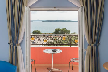 HOTEL MIRAMARE u Vodicama predstavlja savršen spoj moderne elegancije i mediteranskog šarma, smješten na idealnoj lokaciji tek nekoliko koraka od kristalno čistog Jadranskog mora. Ovaj profinjeni objekt s četiri zvjezdice nalazi se uz samu obalu, istočno od užurbane gradske jezgre, pružajući mirno utočište uz istovremenu blizinu svih ključnih sadržaja.