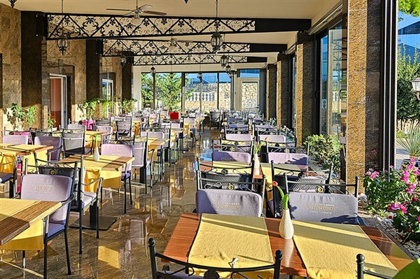 Na raspolaganju Vam je trideset unutarnjih sjedećih mjesta i pedeset sjedećih mjesta na prostranoj terasi s pogledom na bazen i plažu u blizini hotela.