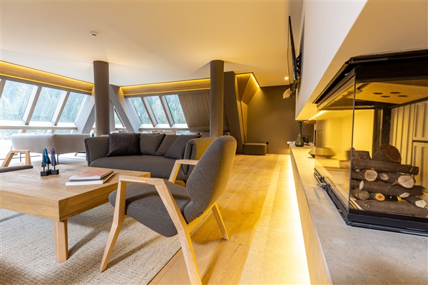 Deluxe soba (22–36 m²) nudi moderan planinski ambijent s velikim staklenim stijenkama i panoramskim pogledom na šumu Igmana. Dizajnirana je za boravak dvije osobe, uz mogućnost pomoćnog ležaja za dijete. Soba raspolaže prostranim king size krevetom (ili dva odvojena ležaja) s madracima od memorijske pjene. Kupaonica je opremljena hidromasažnom kadom, rainfall tušem, podnim grijanjem te nudi ogrtače, papuče i luksuznu kozmetiku. Gostima su na raspolaganju Smart TV (55"), brzi Wi-Fi, radni stol, sef i mini-bar. Svaka soba ima aparat za kavu, set za čaj, sustav klimatizacije i privatni balkon s pogledom na prirodu.