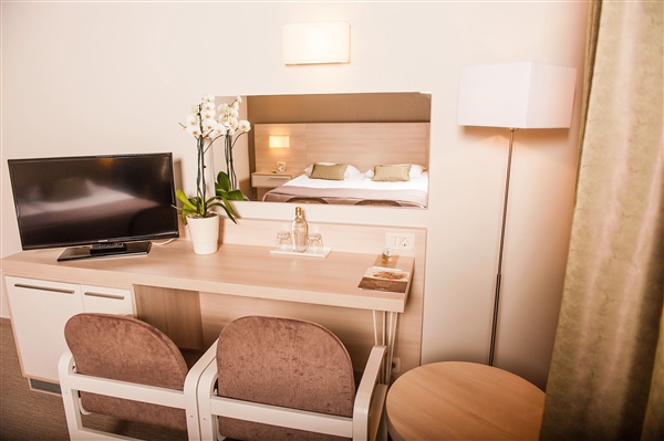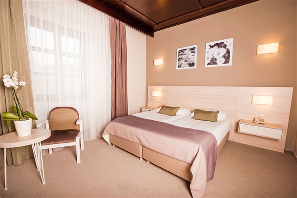 Dvokrevetne sobe PREMIUM očaravaju sa prirodnim tonovima i istodobno osvježenim bojama koje dočaravaju park cvijeća u hotelskoj sobi.