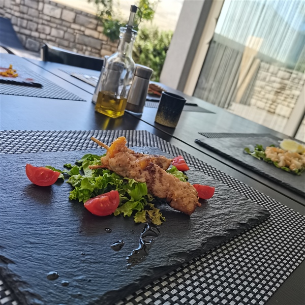 Još jedna od posebnosti ovog restorana je što nudimo namirnice od lokalnih malih proizvođača vina, ulja, povrća i ostalih proizvoda. Na taj način svojim gostima nudimo upoznavanje pravih okusa Istre.