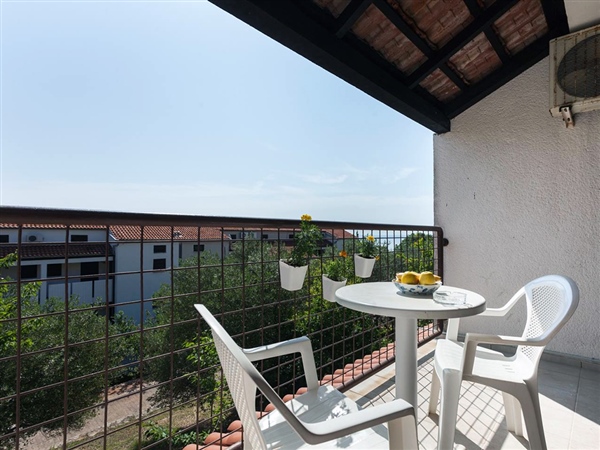 Uređen za četiri osobe, ovaj apartman srednje veličine ima privatni ulaz. Osim toga, ima i klima uređaj, ploče za kuhanje, privatnu kupaonicu te balkon s pogledom na more. (42m2; 4 osobe).