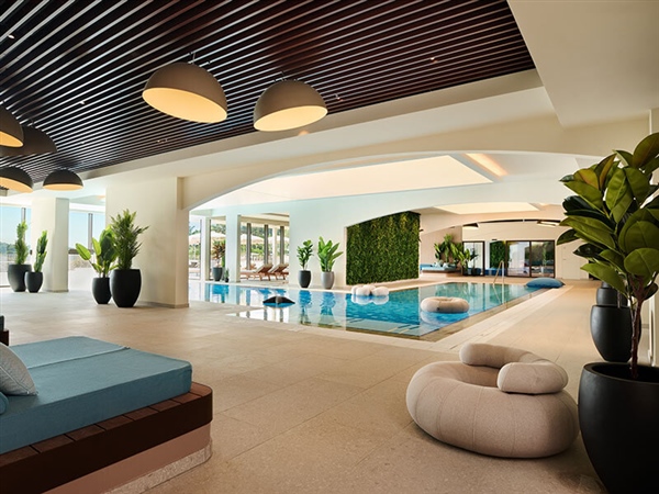 Obiteljski kompleks bazena uključuje unutarnji bazen od 235 m² sa slatkom vodom, povezan s vanjskim bazenom, temperaturom od 28 °C, vodenim toboganom, vodopadom, masažnim mlaznicama i obiteljskom saunom.