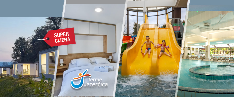 TERMALNI UGOĐAJ u Termama Jezerčica za cijelu obitelj! 2 noći u Exclusive mobilnoj kućici za 4 odrasle i 2 djece, s bazenima, wellnessom, fitnessom, vježbama s fizioterapeutom i ANIMACIJOM za djecu!