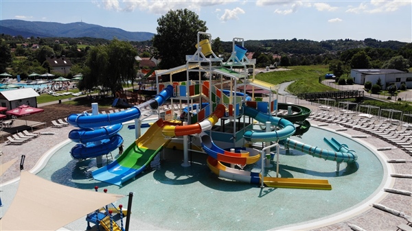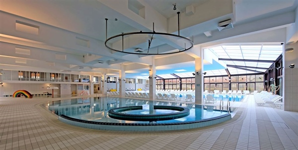 Unutarnji vodeni park s prirodnom termalnom vodom otvoren je cijele godine te nudi plivački bazen, hidromasažni bazen, dječji bazen s toboganima, bazen za bebe i rekreacijski bazen. Termalna voda izvorne temperature 38°C sadrži više različitih iona te se smatra ljekovitom mineralnom vodom.