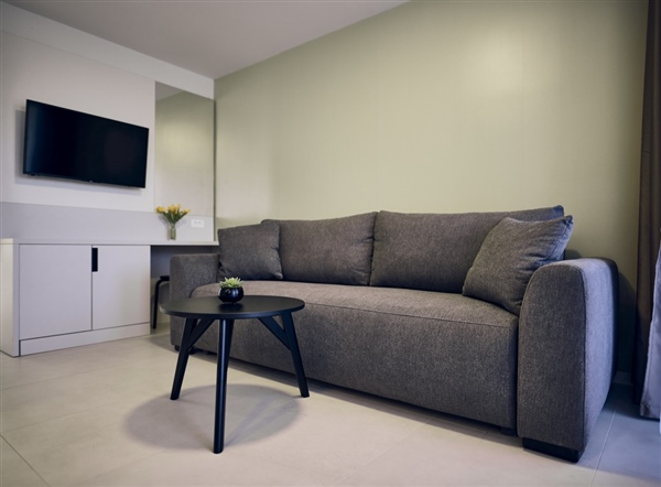 Moderan studio apartman s balkonom ili terasom, površine 32 m2, dostupan isključivo stepenicama. Svaki je apartman klimatiziran, ima flat-screen TV sa satelitskim programima, sef, telefon i high-speed WI-FI internet.