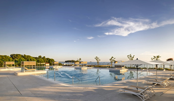 Tri VANJSKA BAZENA (na raspolaganju ovisno o vremenskim prilikama) punjena morskom vodom nalaze se odmah iznad plaže pa možete kombinirati svoj dan na plaži ili bazenu s pogledom na more i Rovinj.